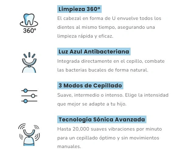 ¡La diferencia se nota! Es muchísimo mejor que otros cepillos eléctricos que hemos probado, y sinceramente es el único que nuestro hijo puede usar solo. Es súper delicado con las encías, y al ponerlo en el modo intermedio limpia muy bien sin causarle ninguna molestia, cosa que antes pasaba seguido. Juro que nunca pensé verlo feliz de lavarse los dientes, ¡pero eso fue exactamente lo que pasó! Al final solo necesitábamos algo que se adaptara a sus necesidades. De verdad, es un primer paso para crear un hábito sano y duradero. ¡Mil gracias!